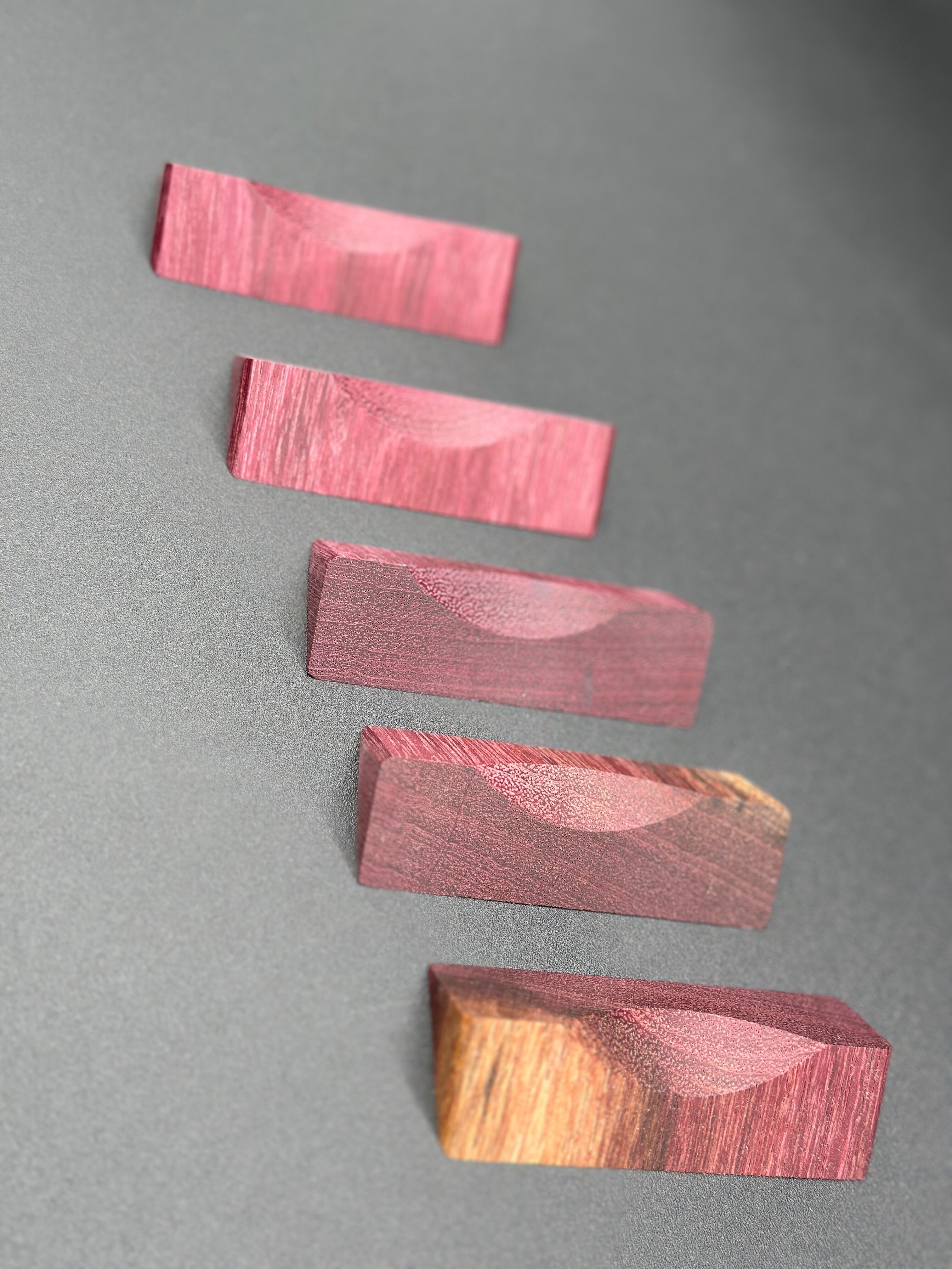 パープルハートは高い硬度と耐久性を兼ね備えており、時間の経過と共に深く落ちついた紫へと変化していきます。