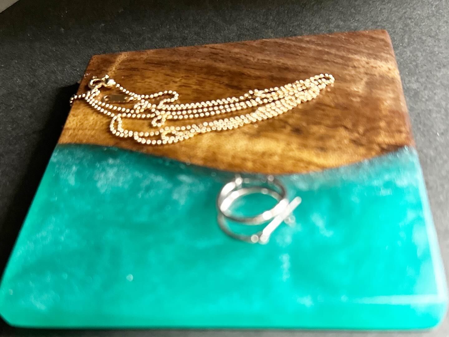 ダークブラウンの深みのある色合い、美し木目、高級感あふれる【ブラックウォールナット】にレジンを組み合わせたトレイ。