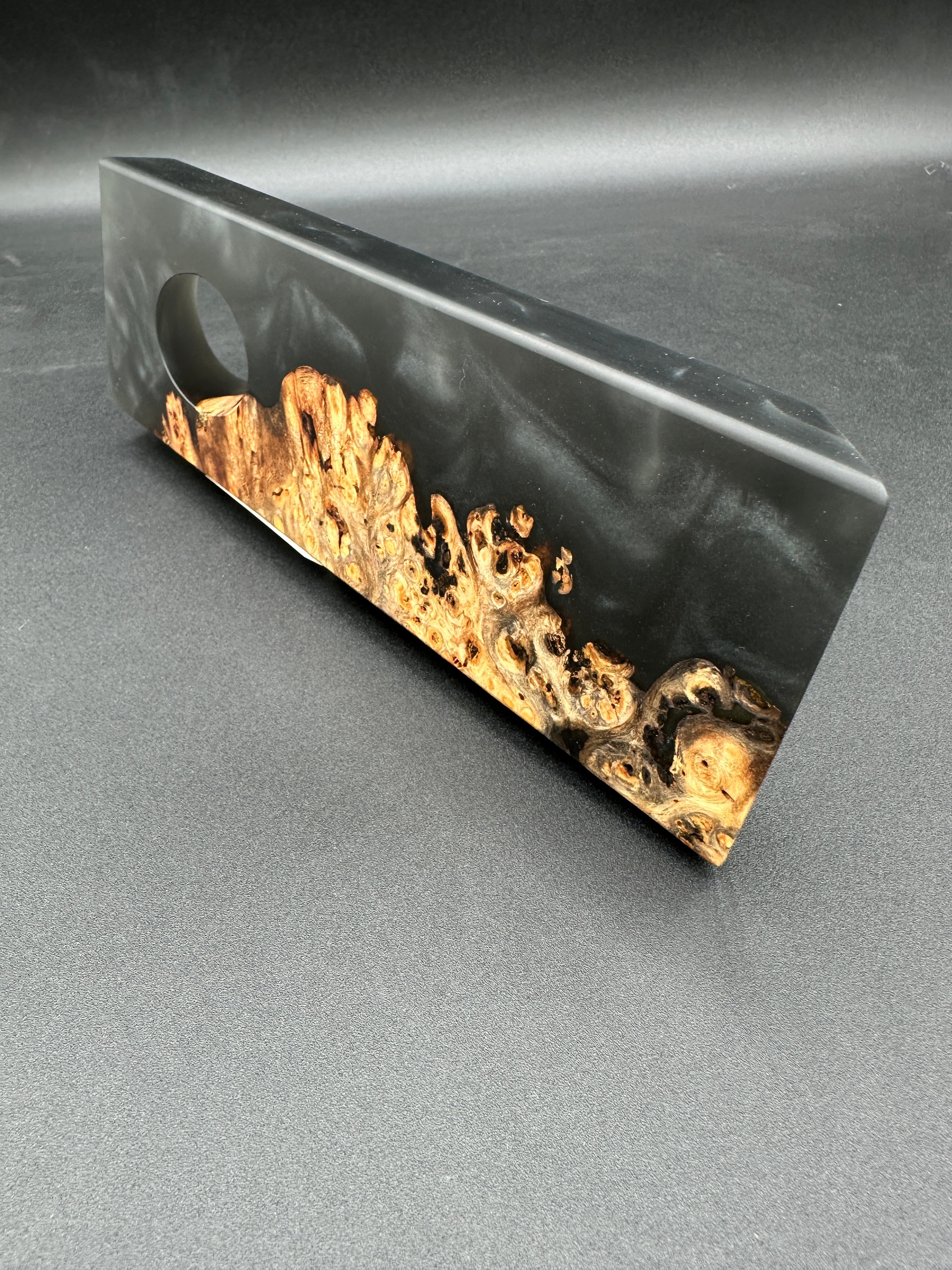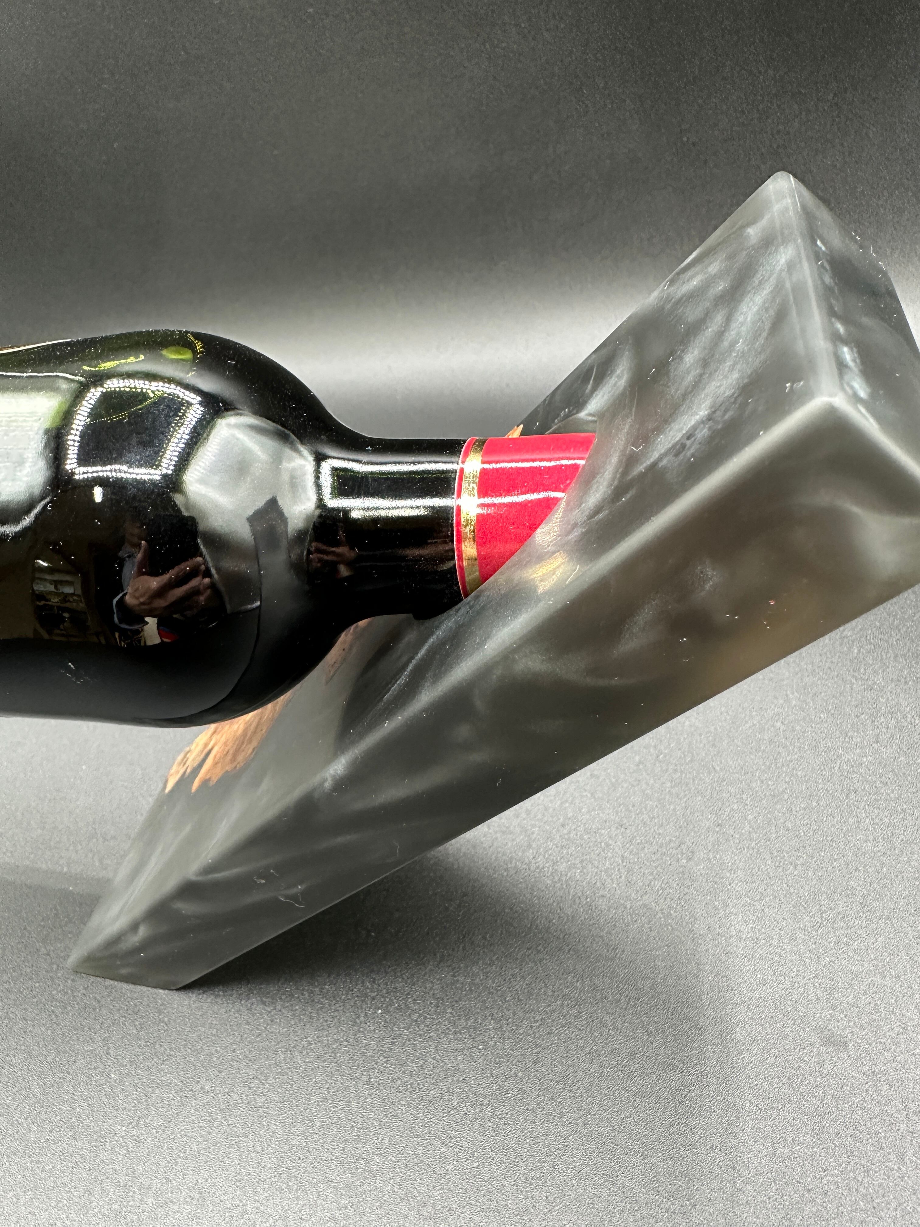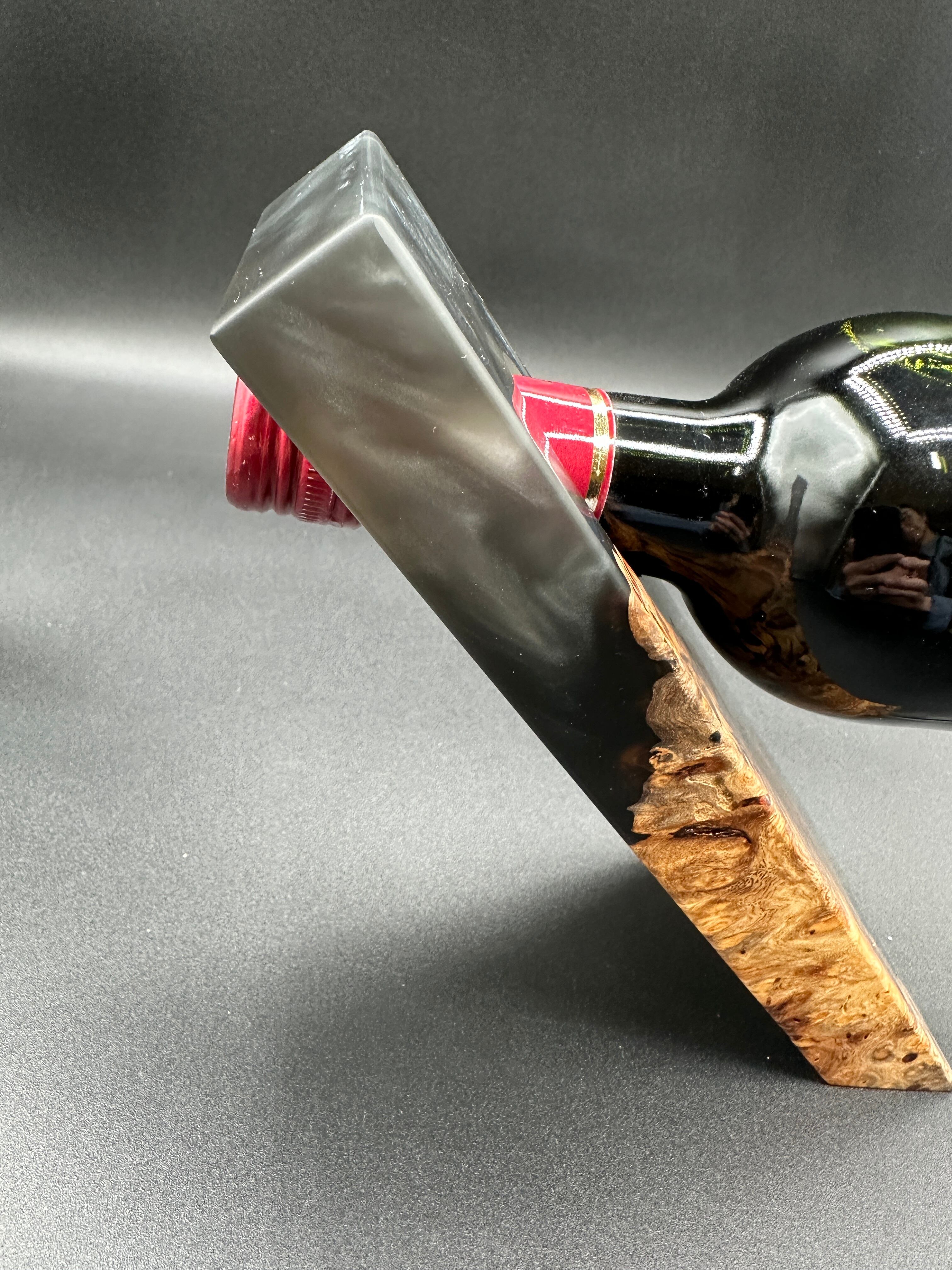 重厚感あふれる木材【カリン】にレジンを組み合わせたワイボトルホルダー。