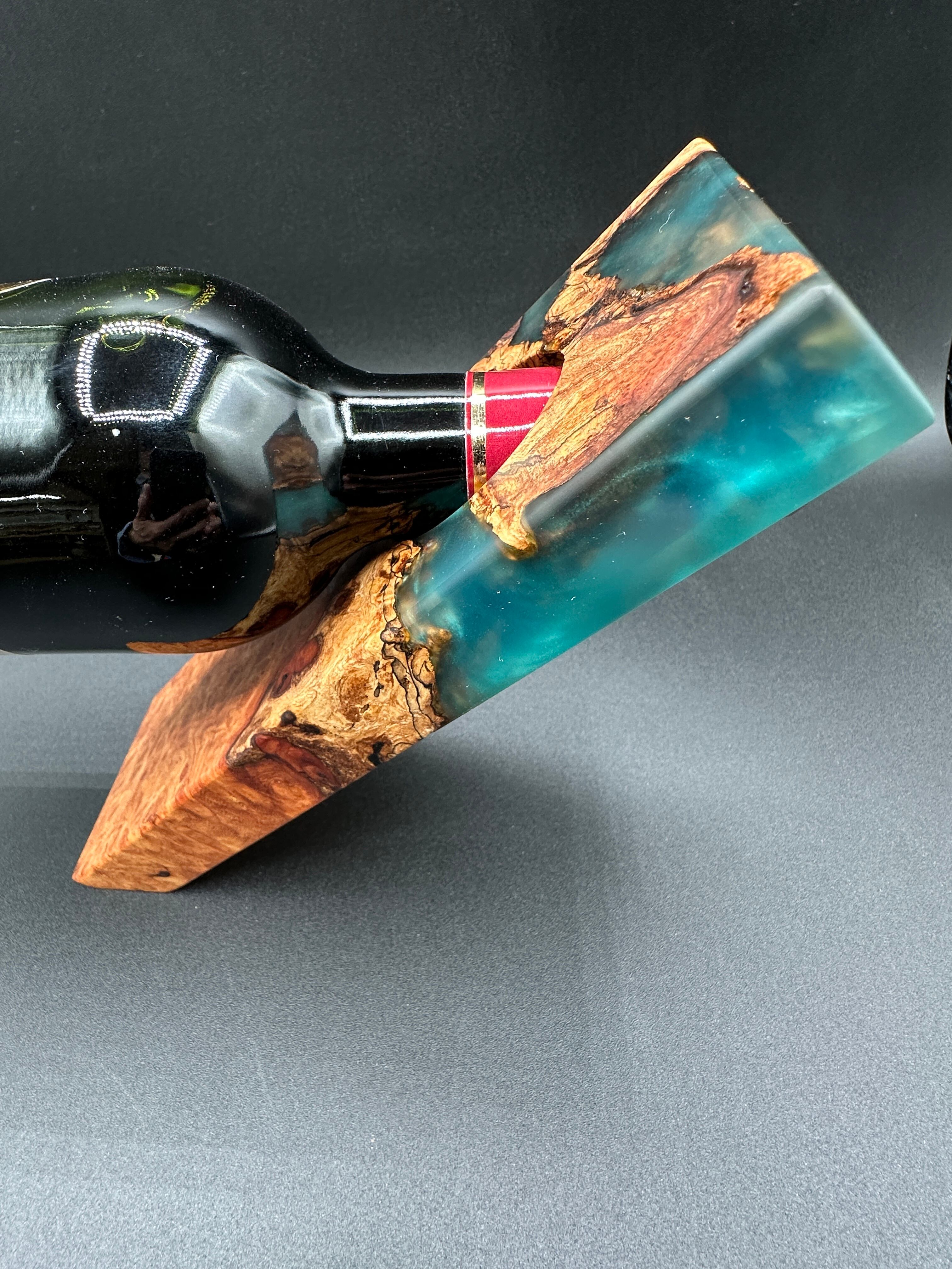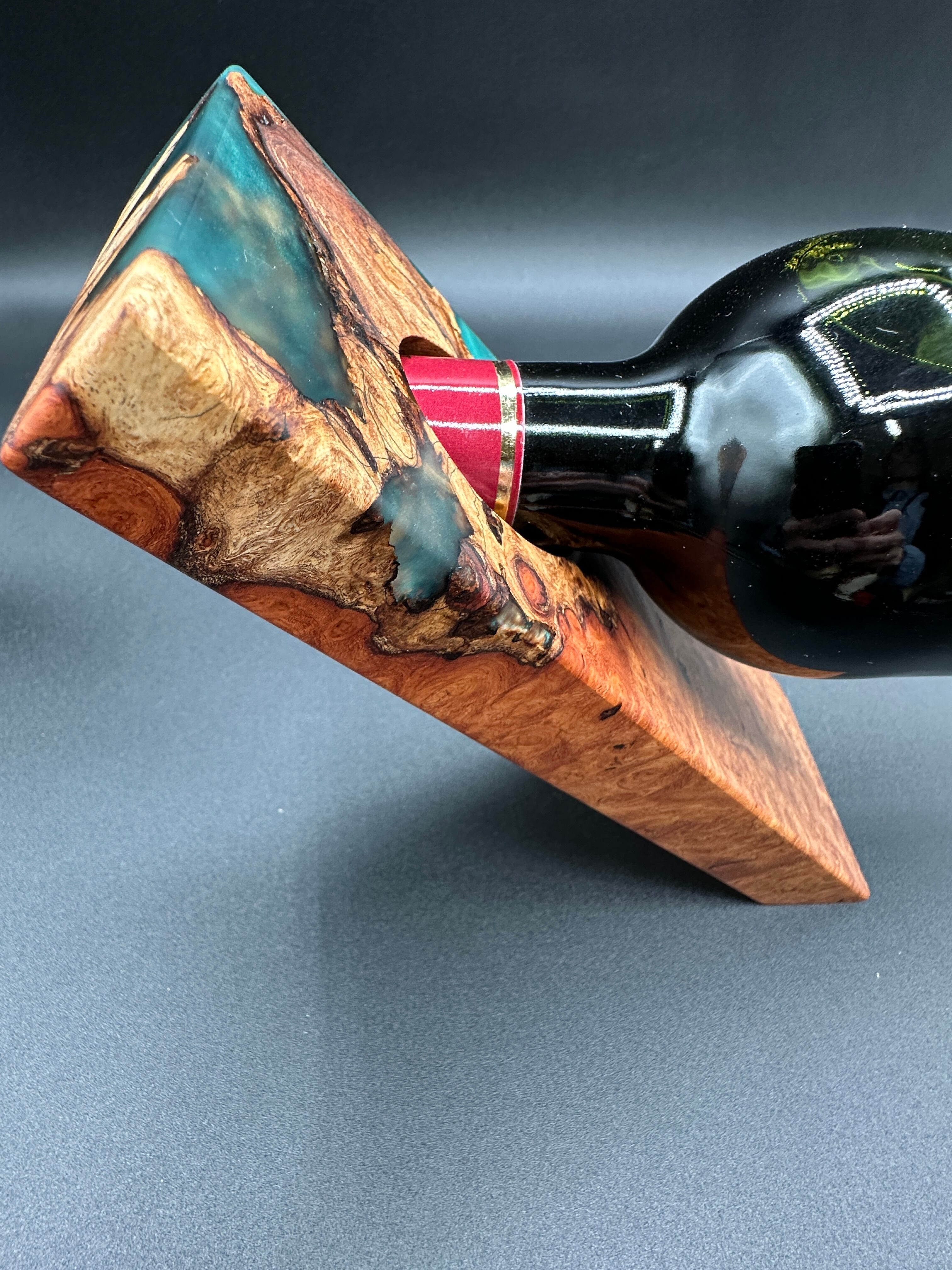 重厚感あふれる木材【カリン】にレジンを組み合わせたワイボトルホルダー。