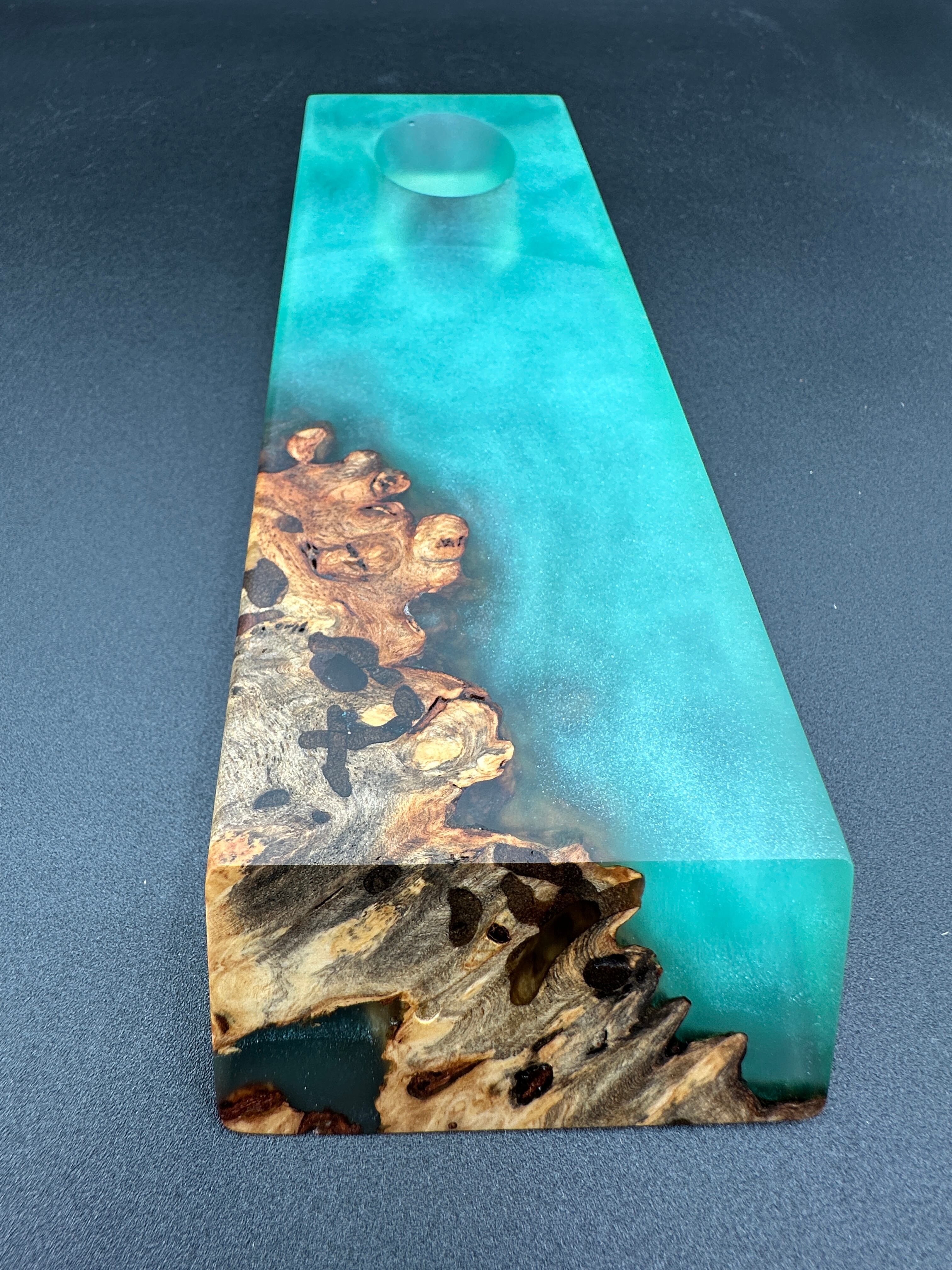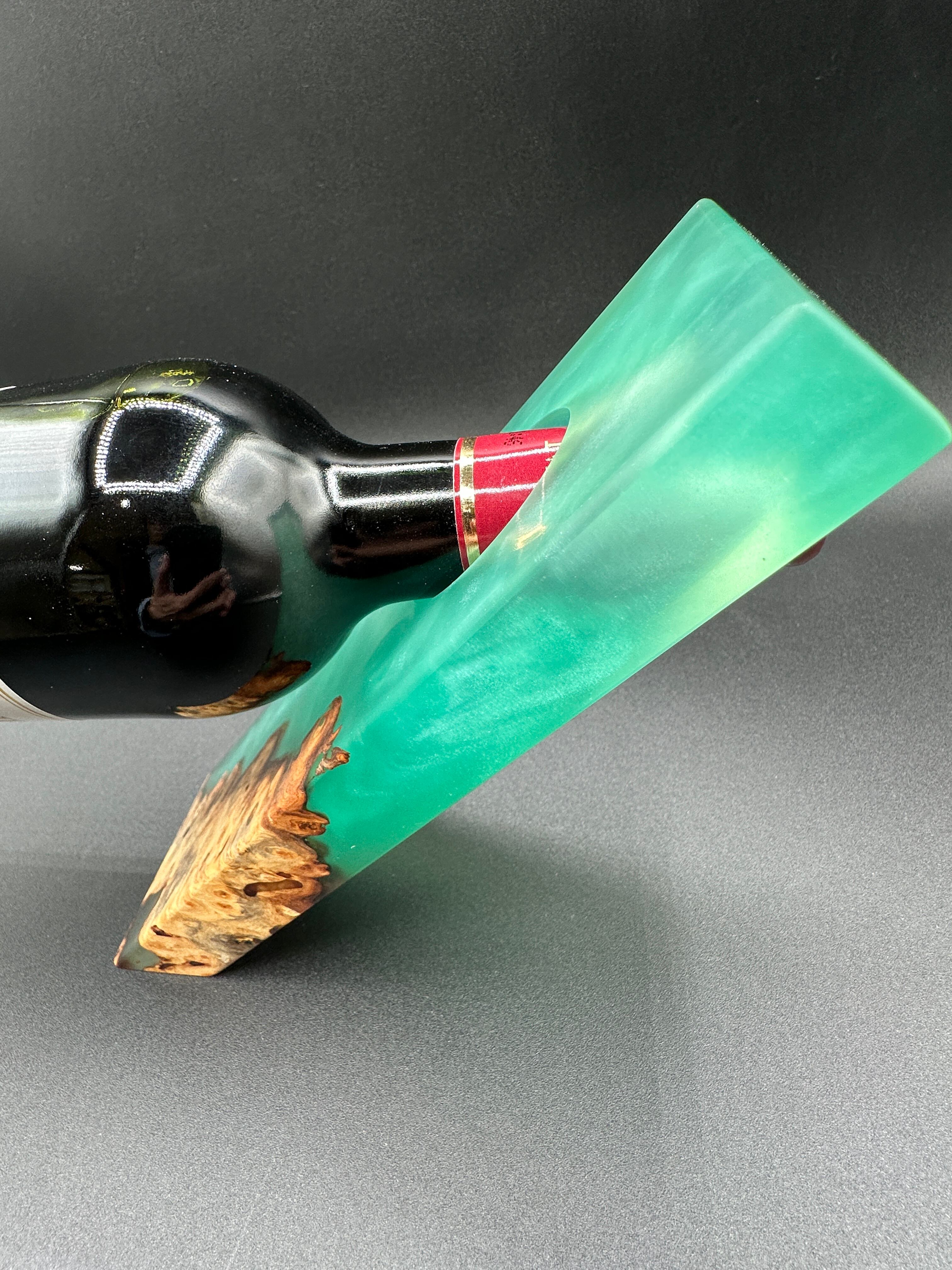 重厚感あふれる木材【カリン】にレジンを組み合わせたワイボトルホルダー。