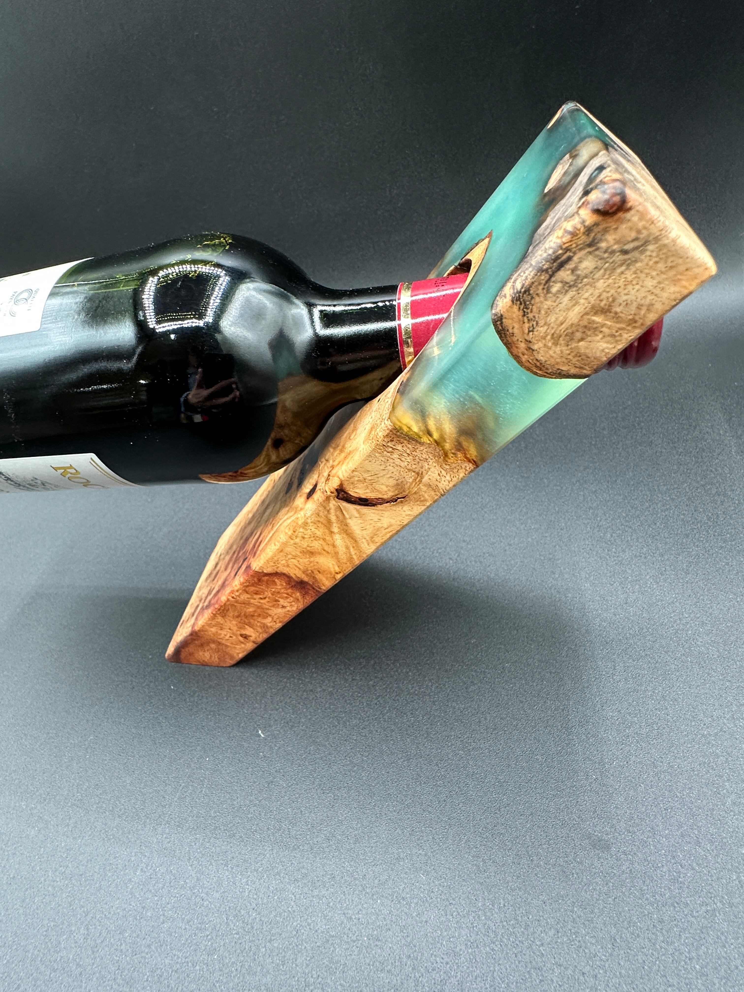 重厚感あふれる木材【カリン】にレジンを組み合わせたワイボトルホルダー。