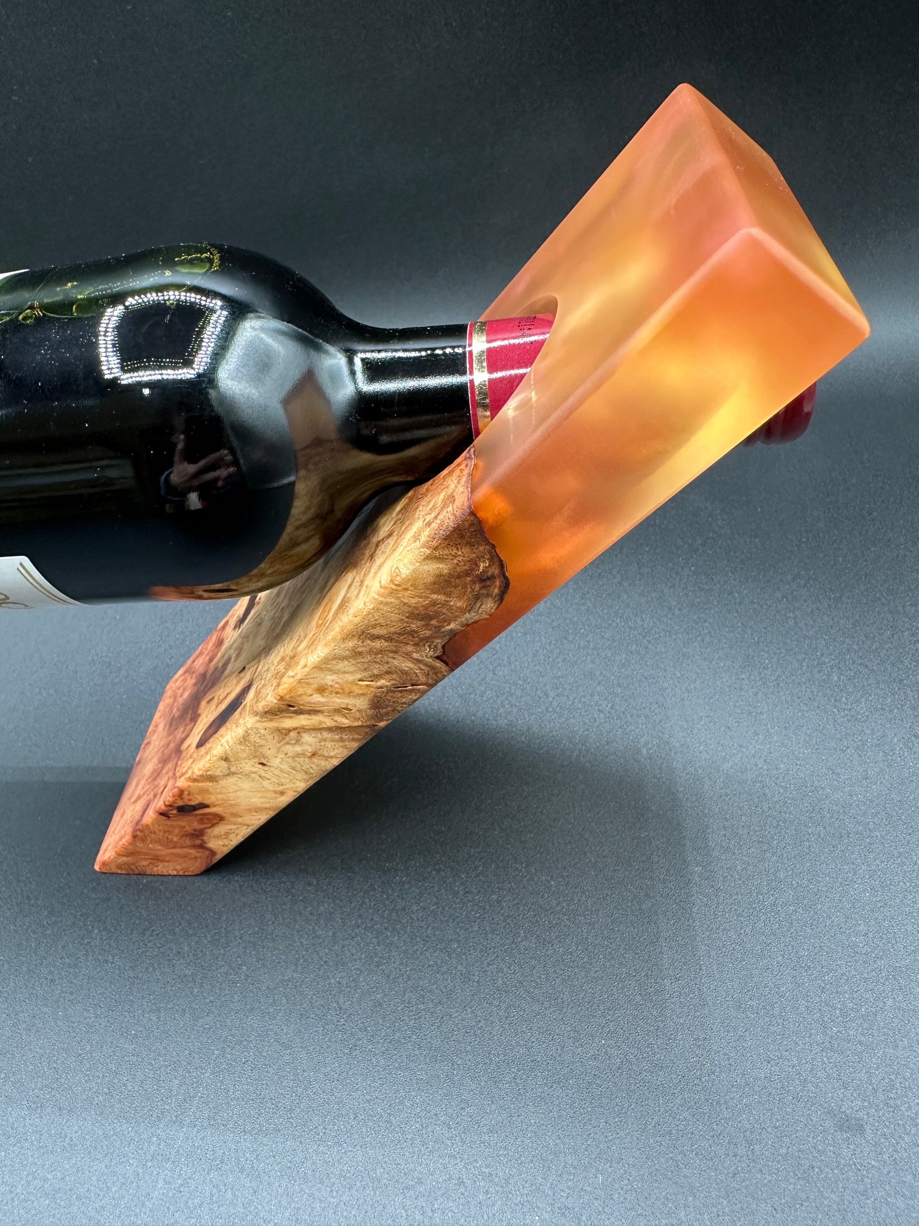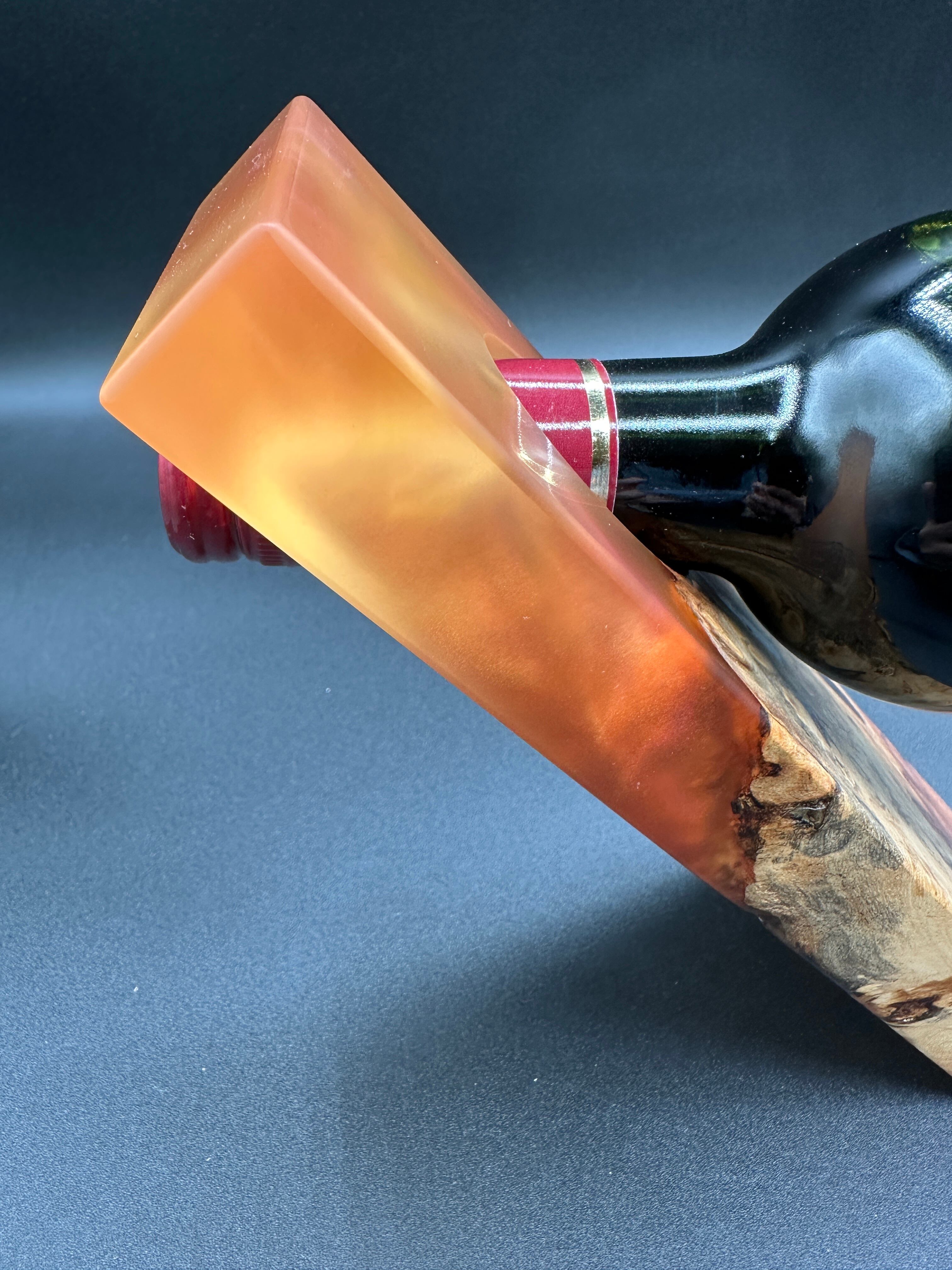 重厚感あふれる木材【カリン】にレジンを組み合わせたワイボトルホルダー。
