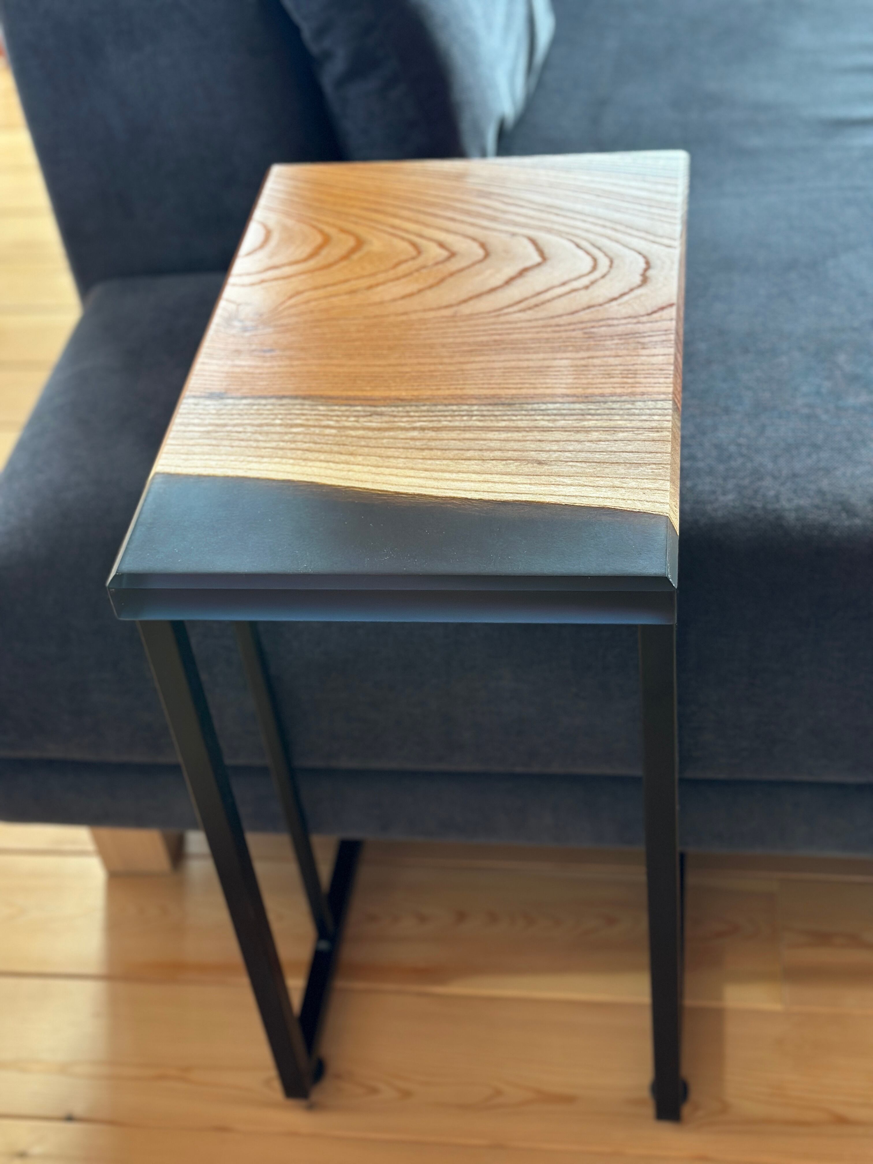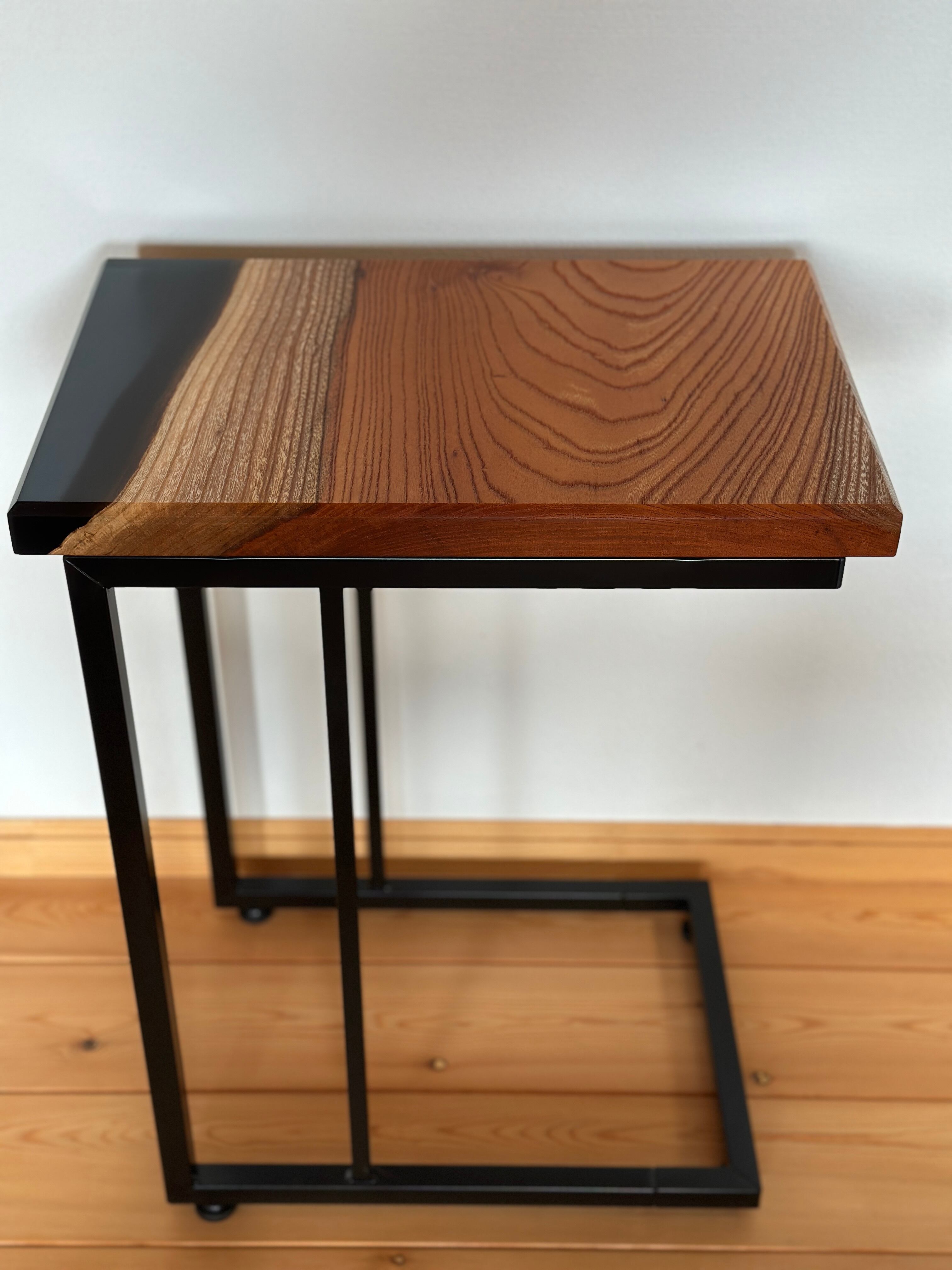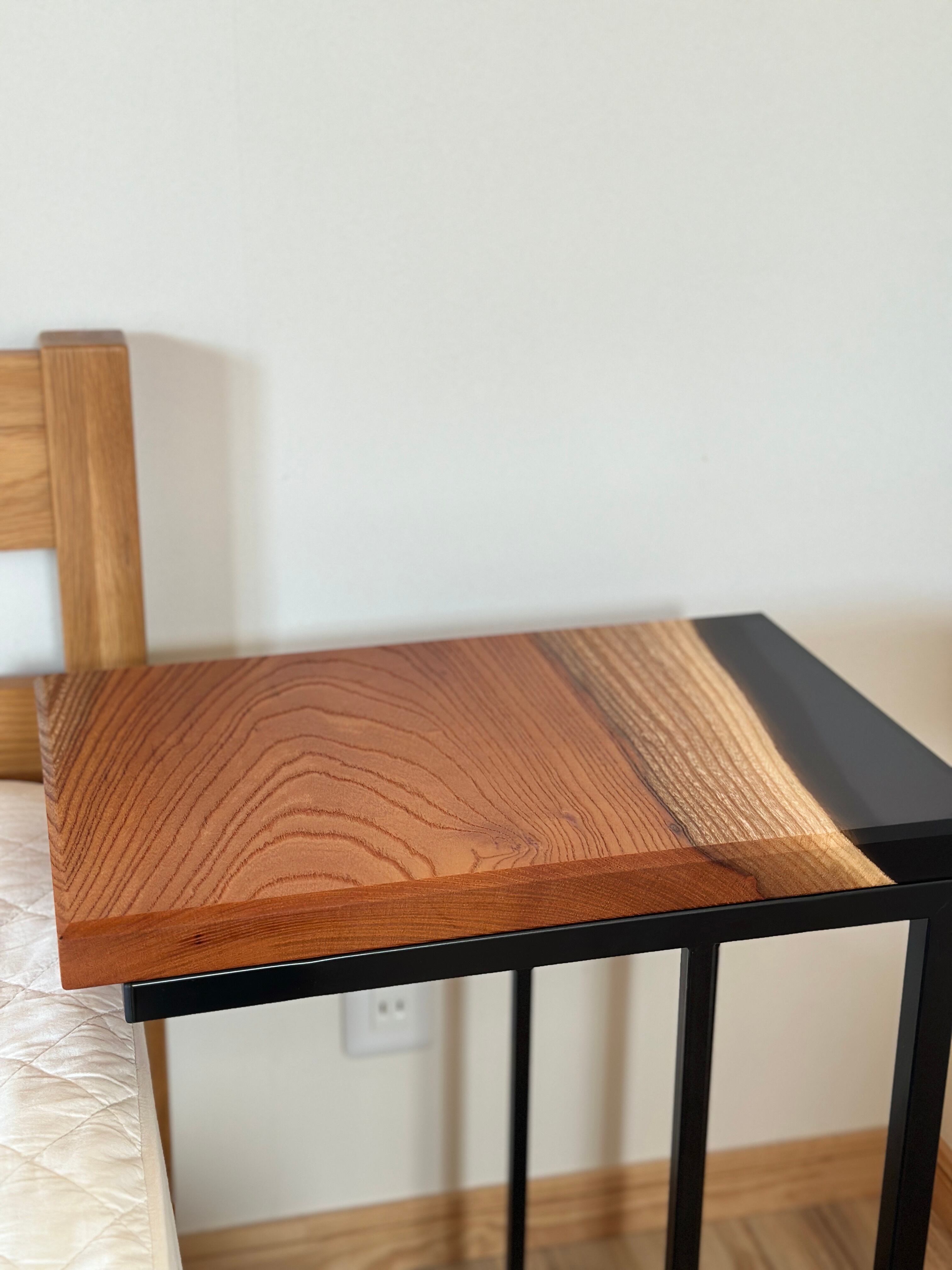 力強い木目の【ケヤキ】にレジンを組み合わせたサイドテーブル。