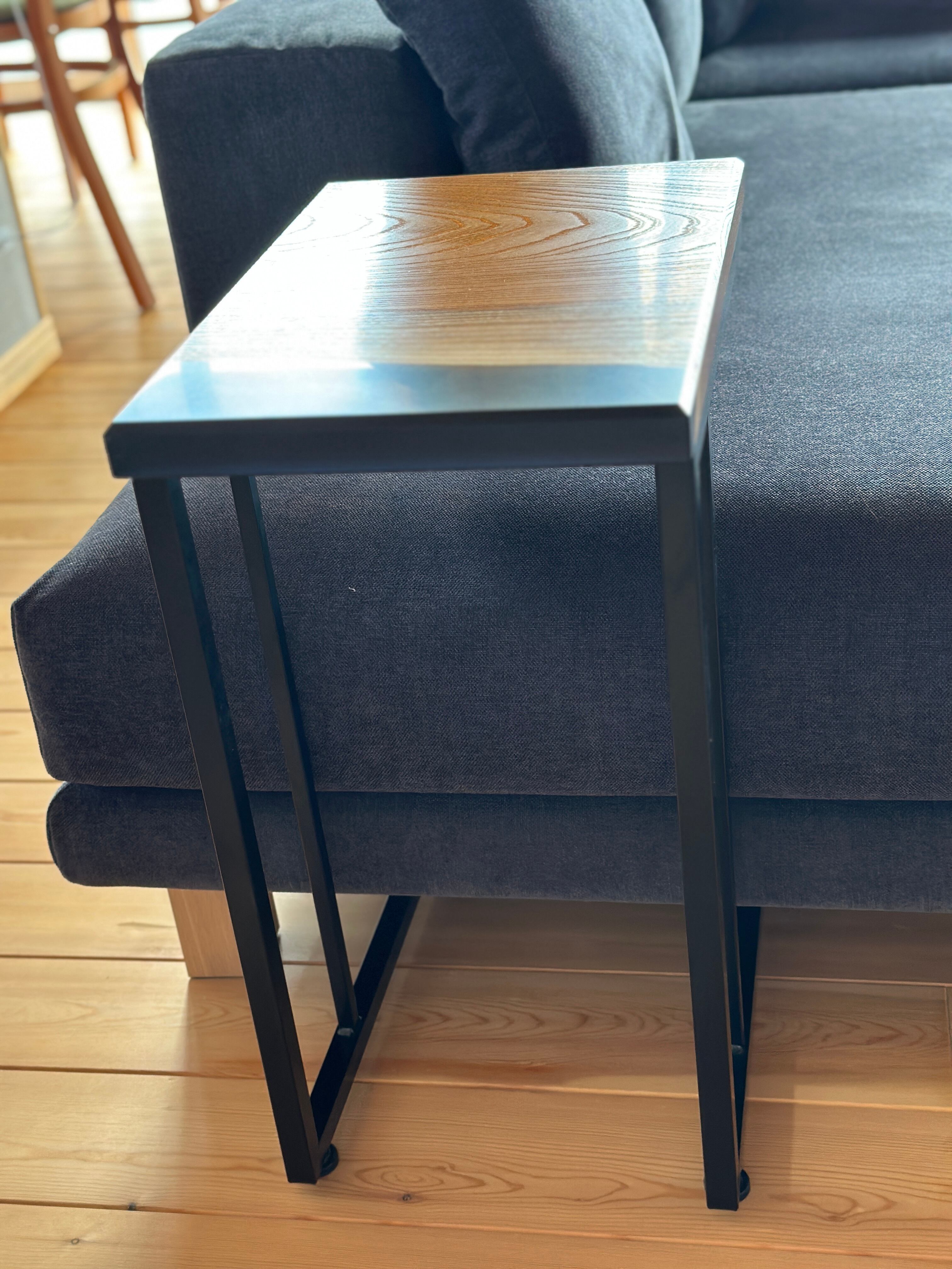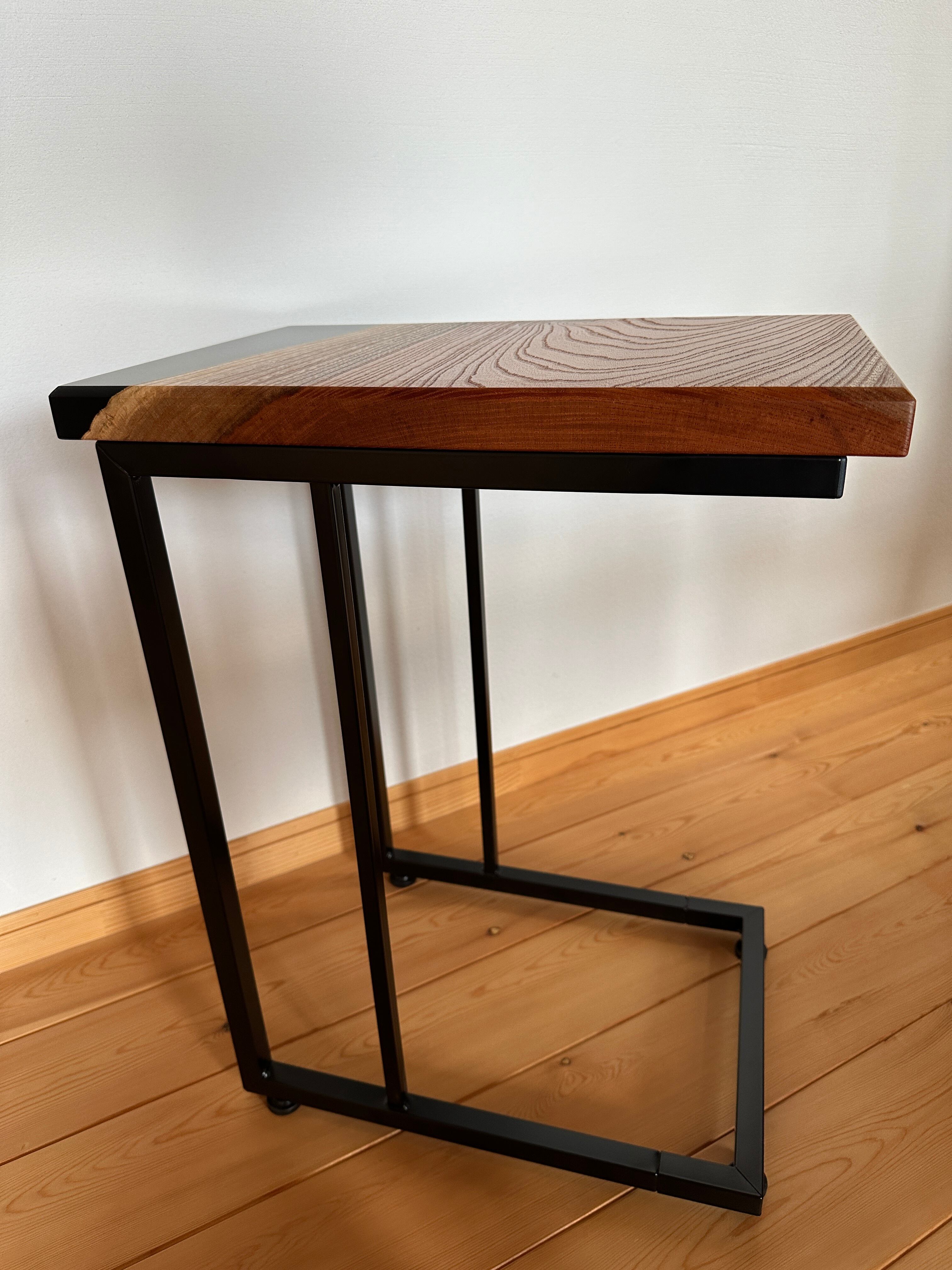 天然木×レジン(ブラック)欅C型サイドテーブル